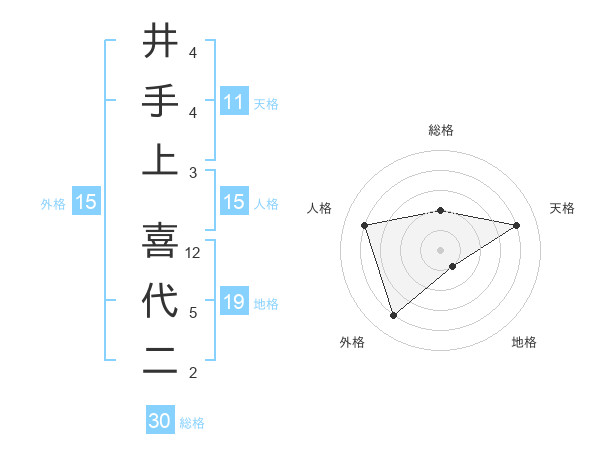 井手上 喜代二さんを姓名の画数から五運を鑑定