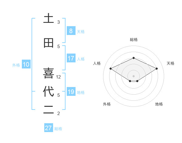 土田 喜代二さんを姓名の画数から五運を鑑定