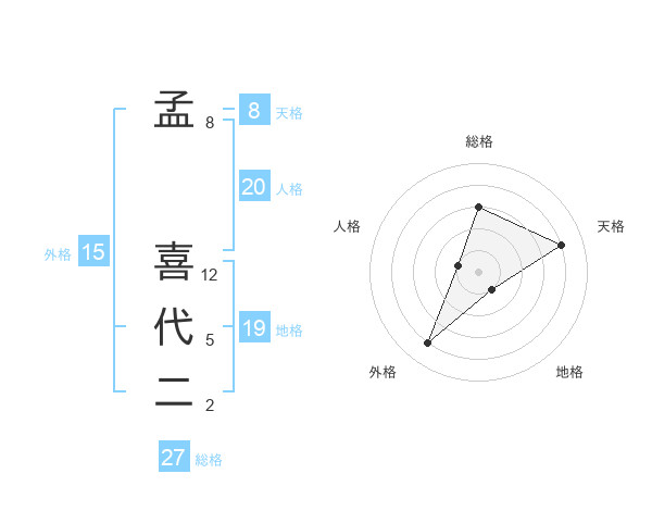 孟 喜代二さんを姓名の画数から五運を鑑定
