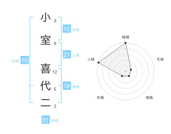 小室 喜代二さんを姓名の画数から五運を鑑定