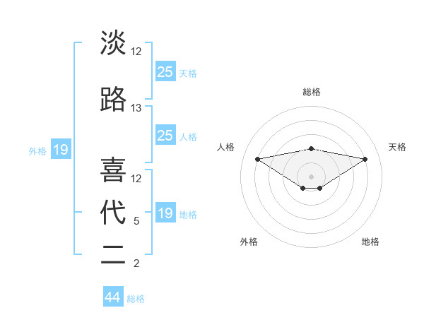 淡路 喜代二さんを姓名の画数から五運を鑑定