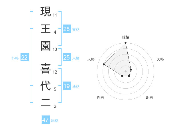 現王園 喜代二さんを姓名の画数から五運を鑑定