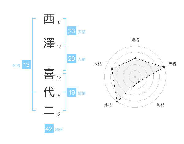 西澤 喜代二さんを姓名の画数から五運を鑑定
