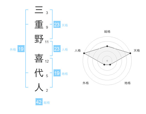 三重野 喜代人さんを姓名の画数から五運を鑑定