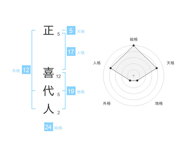 正 喜代人さんの天格は5画の4点!