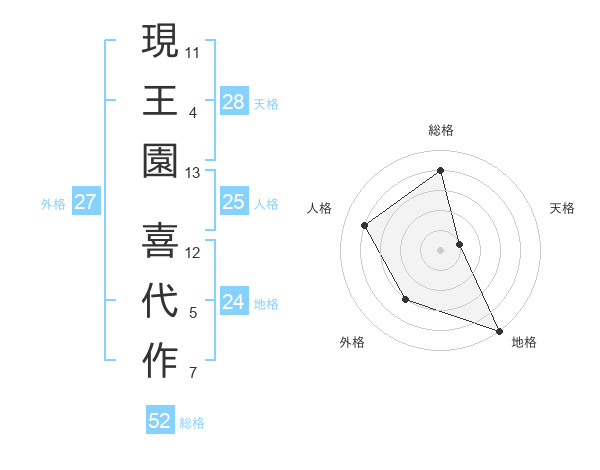 現王園 喜代作さんの総格は52画の4点!