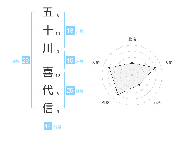 五十川 喜代信さんを姓名の画数から五運を鑑定