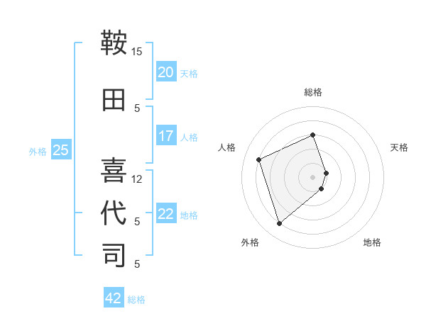 鞍田 喜代司さんの総格は42画の3点!