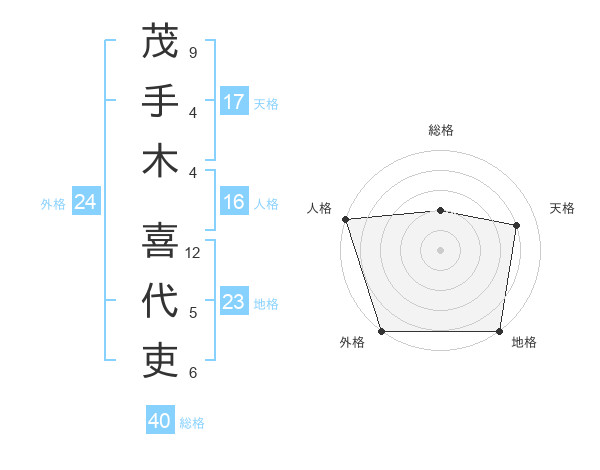 茂手木 喜代吏さんの天格は17画の4点!