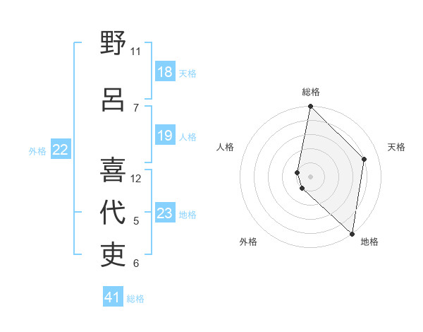 野呂 喜代吏さんの総格は41画の5点!