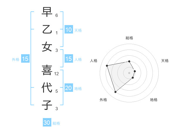 早乙女 喜代子さんを姓名の画数から五運を鑑定