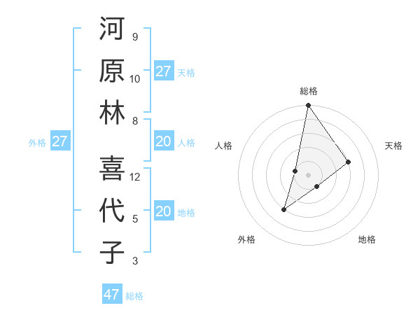河原林 喜代子さんの総格は47画の5点!