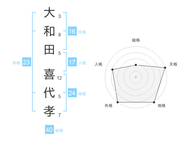 大和田 喜代孝さんを姓名の画数から五運を鑑定