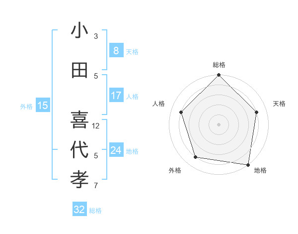 小田 喜代孝さんを姓名の画数から五運を鑑定