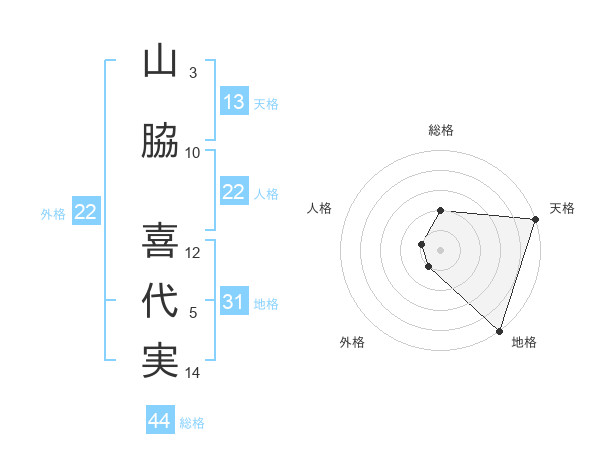 山脇 喜代実さんを姓名の画数から五運を鑑定