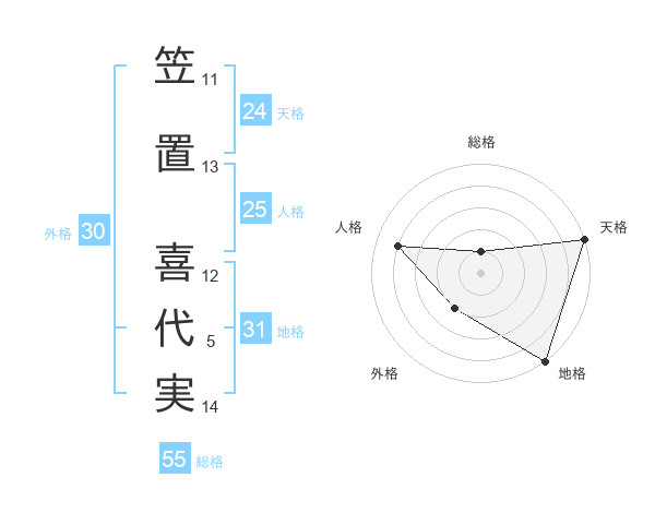 笠置 喜代実さんを姓名の画数から五運を鑑定