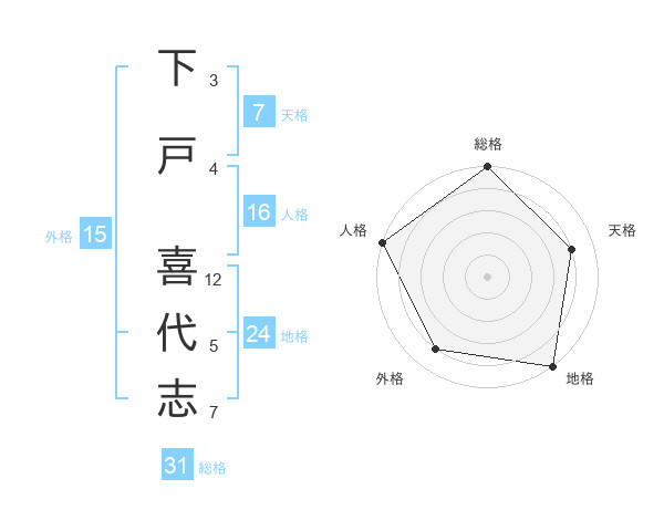 下戸 喜代志さんを姓名の画数から五運を鑑定