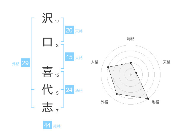 沢口 喜代志さんを姓名の画数から五運を鑑定