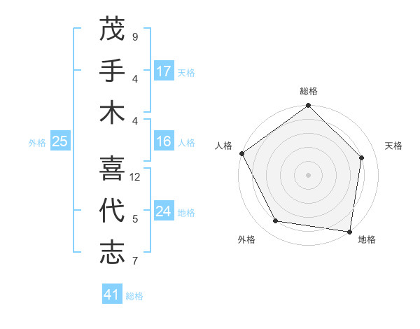 茂手木 喜代志さんを姓名の画数から五運を鑑定