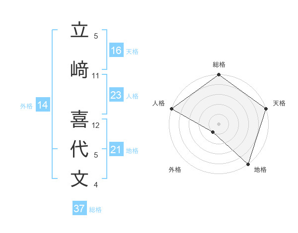 立﨑 喜代文さんを姓名の画数から五運を鑑定