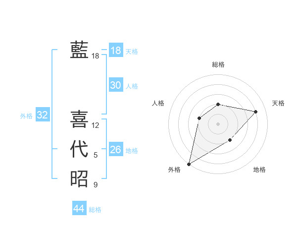 藍 喜代昭さんの外格は32画の5点!