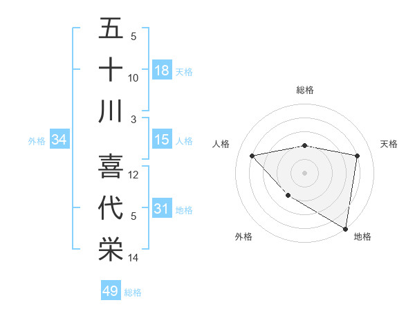 五十川 喜代栄さんの人格は15画の4点!