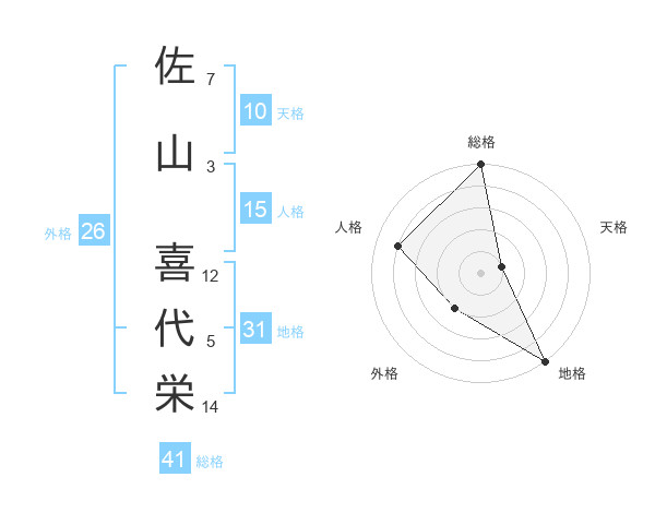 佐山 喜代栄さんを姓名の画数から五運を鑑定