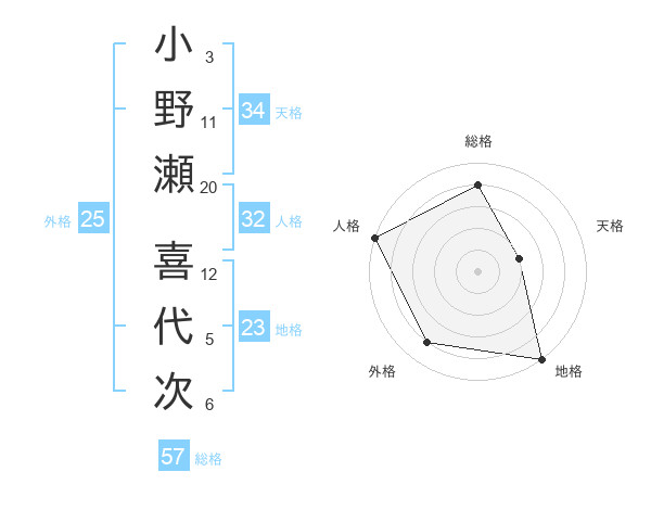 小野瀬 喜代次さんを姓名の画数から五運を鑑定
