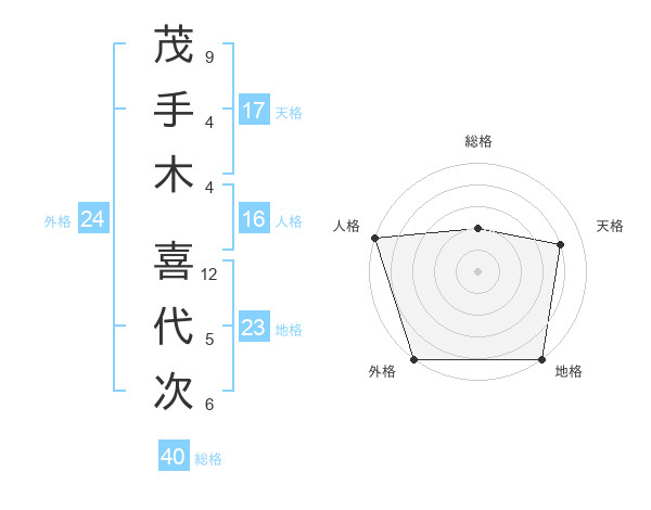 茂手木 喜代次さんを姓名の画数から五運を鑑定