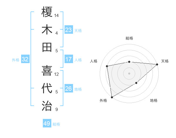 榎木田 喜代治さんの天格は23画の5点!