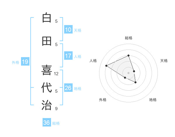 白田 喜代治さんの外格は19画の1点!