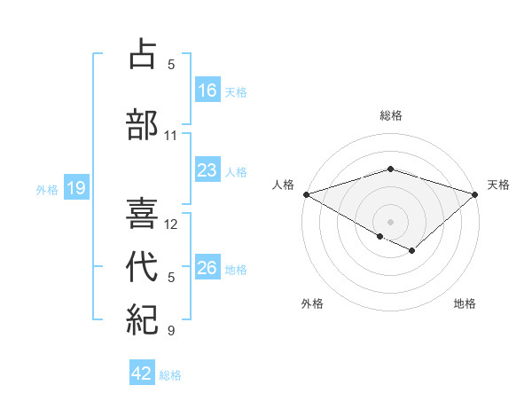 占部 喜代紀さんを姓名の画数から五運を鑑定