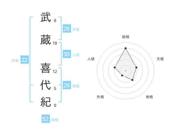 武蔵 喜代紀さんの総格は52画の4点!