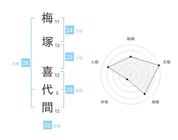 梅塚 喜代間さんを姓名の画数から五運を鑑定