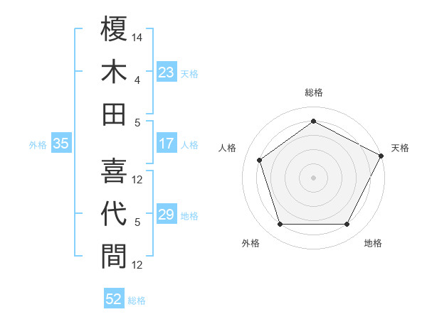榎木田 喜代間さんの総格は52画の4点!