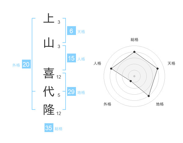 上山 喜代隆さんを姓名の画数から五運を鑑定