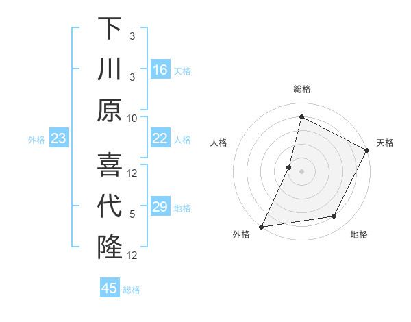 下川原 喜代隆さんの総格は45画の4点!
