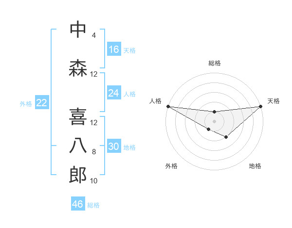 中森 喜八郎さんを姓名の画数から五運を鑑定