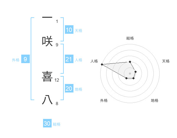 一咲 喜八さんを姓名の画数から五運を鑑定