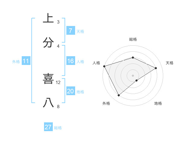 上分 喜八さんの総格は27画の3点!