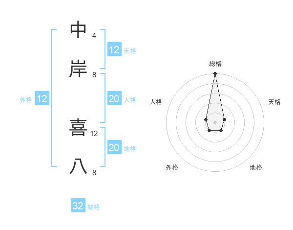 中岸 喜八さんを姓名の画数から五運を鑑定