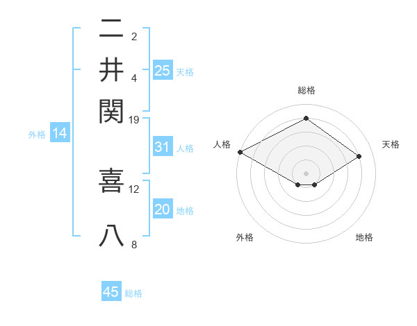 二井関 喜八さんの総格は45画の4点!