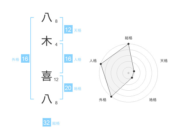 八木 喜八さんの総格は32画の5点!