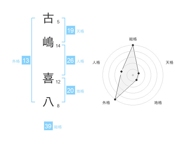 古嶋 喜八さんの外格は13画の5点!