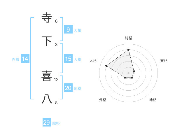 寺下 喜八さんの総格は29画の4点!