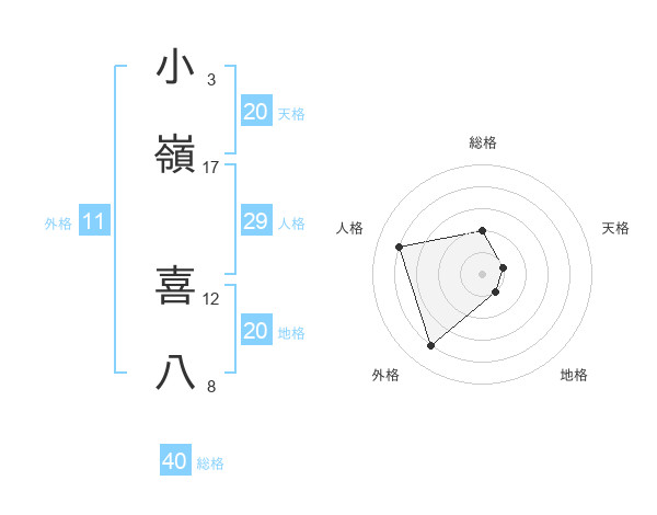 小嶺 喜八さんを姓名の画数から五運を鑑定