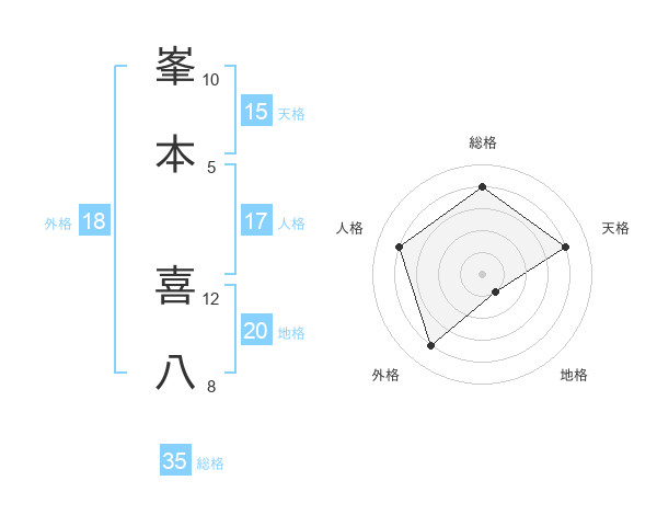 峯本 喜八さんを姓名の画数から五運を鑑定