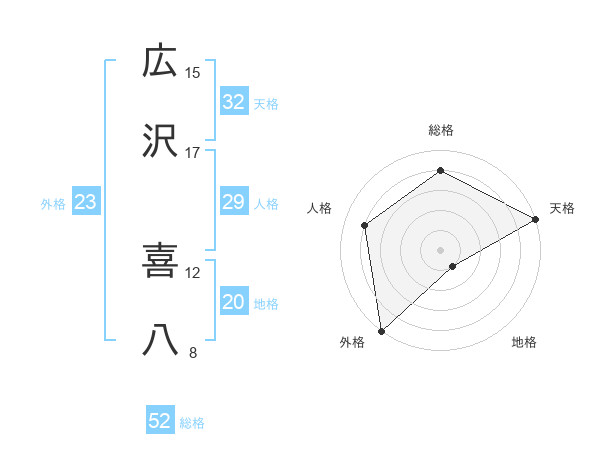 広沢 喜八さんを姓名の画数から五運を鑑定