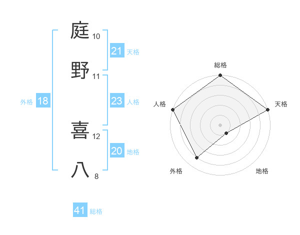 庭野 喜八さんを姓名の画数から五運を鑑定