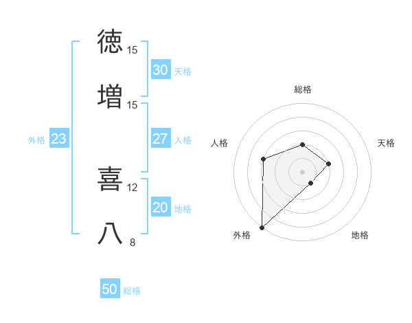 徳増 喜八さんの外格は23画の5点!
